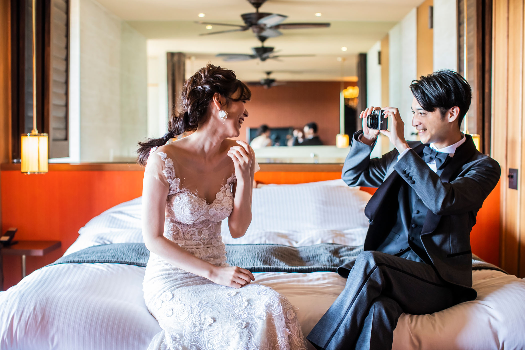 挙式当日は浜名湖に反射する朝日の光や鳥のさえずりで爽やかに目が覚め、お部屋でゆっくりとご支度を。