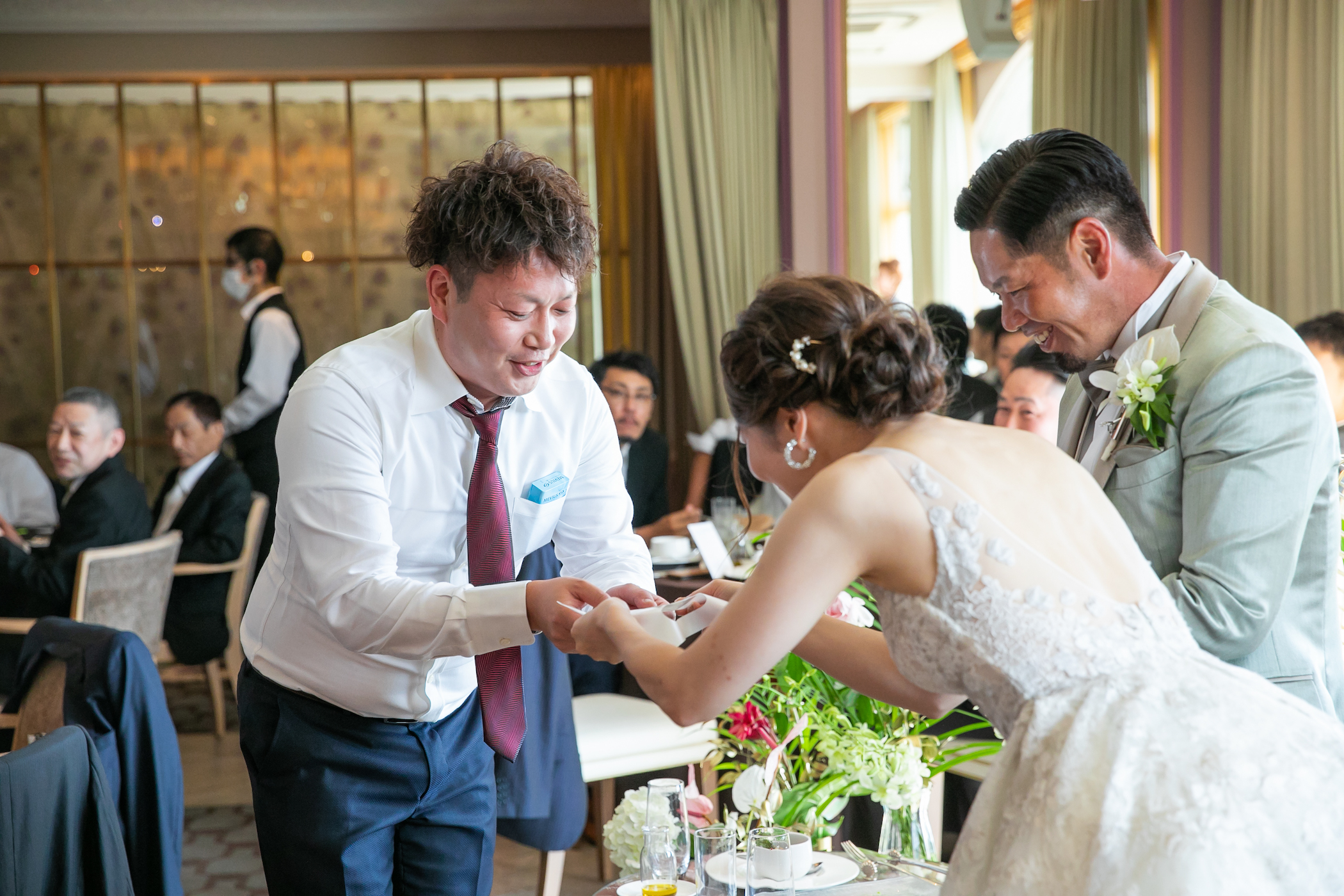 会場はお二人らしくリゾート感を取り入れつつ、ゲストとの距離を近く感じるアットホームな雰囲気に